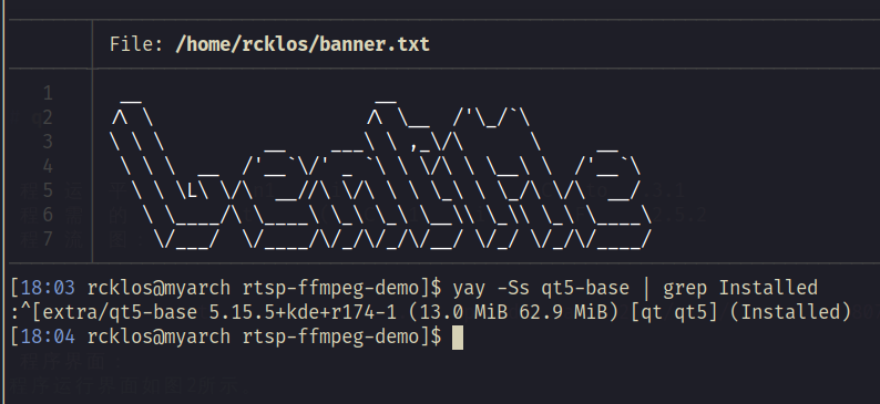 FFmpeg实现RTSP拉取视频demo 开发环境说明 操作系统 cmake qt ffmpeg 如何运行 git clone https://github.com/rcklos/rtsp-ffmpeg-demo.git cd rtsp-ffmpeg-demo/build cmake .. && cmake --build . && ./demo