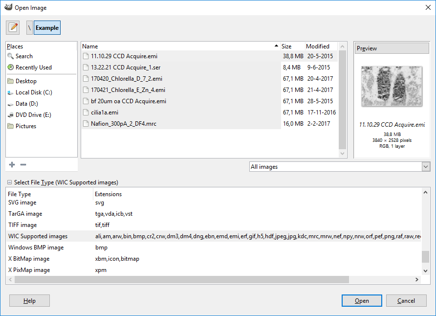 This GIMP plugin adds reading support for all image formats that are supported by the Windows Imaging Component (WIC) codecs on your computer