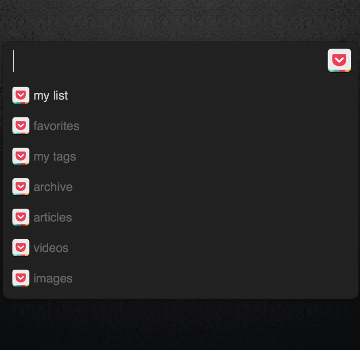 - Pocket (moved to it from Instapaper as I found using this Alfred workflow a huge life changer in how I can both save and view my articles on the spot both on mobile and on my Mac. I use Pocket to save and archive articles that I like with relevant to me tags.)