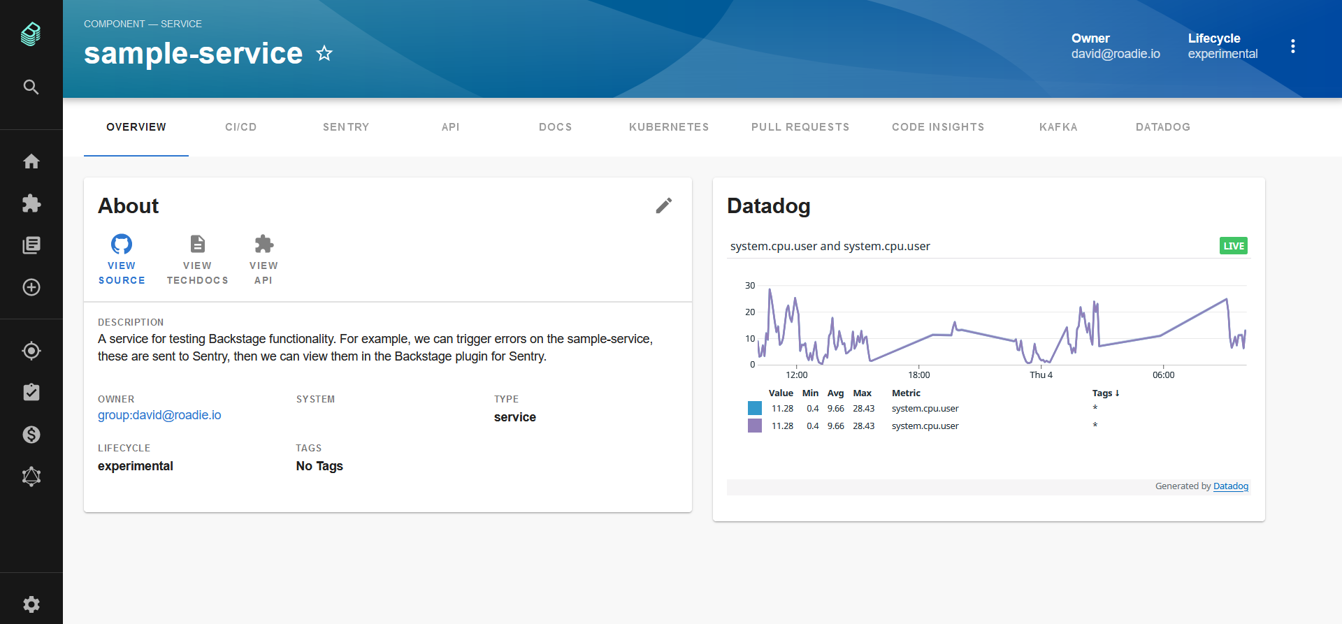 $ yarn add @roadiehq/backstage-plugin-datadog- import the plugin to the entityPage.tsx source file: