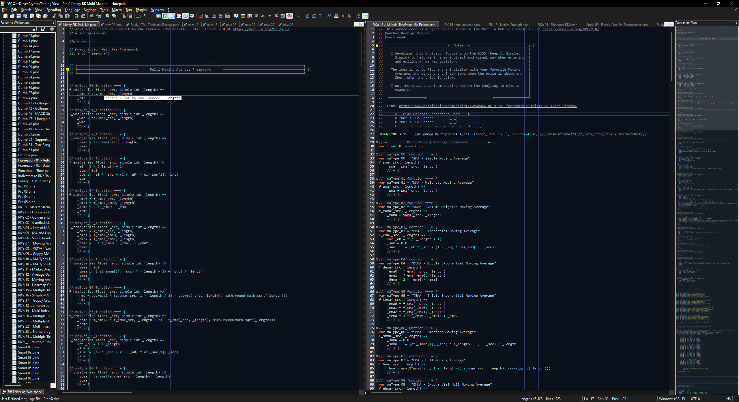 Pine Editor Dark Theme, Syntax Highlighting and Auto-Completion: Already implemented Features: autoCompletion - PineScript autoCompletion Language operators, Built-in variables, functions, parameters and keywords themes - Notepad++ Theme based on Pine Script Editor userDefineLangs - Notepad++ Pine Script syntax highlighting Installation: Donwload the notepad-plus-plus.7z or the notepad-plus-plus.zip Than extract direct to the main notepad++ folder. Normally on %AppData%\Notepad++\ Each of the 3 files goes to their folder. Features to finish: Function List - Function List Generator Language-Support - Add PineScript to native language-support