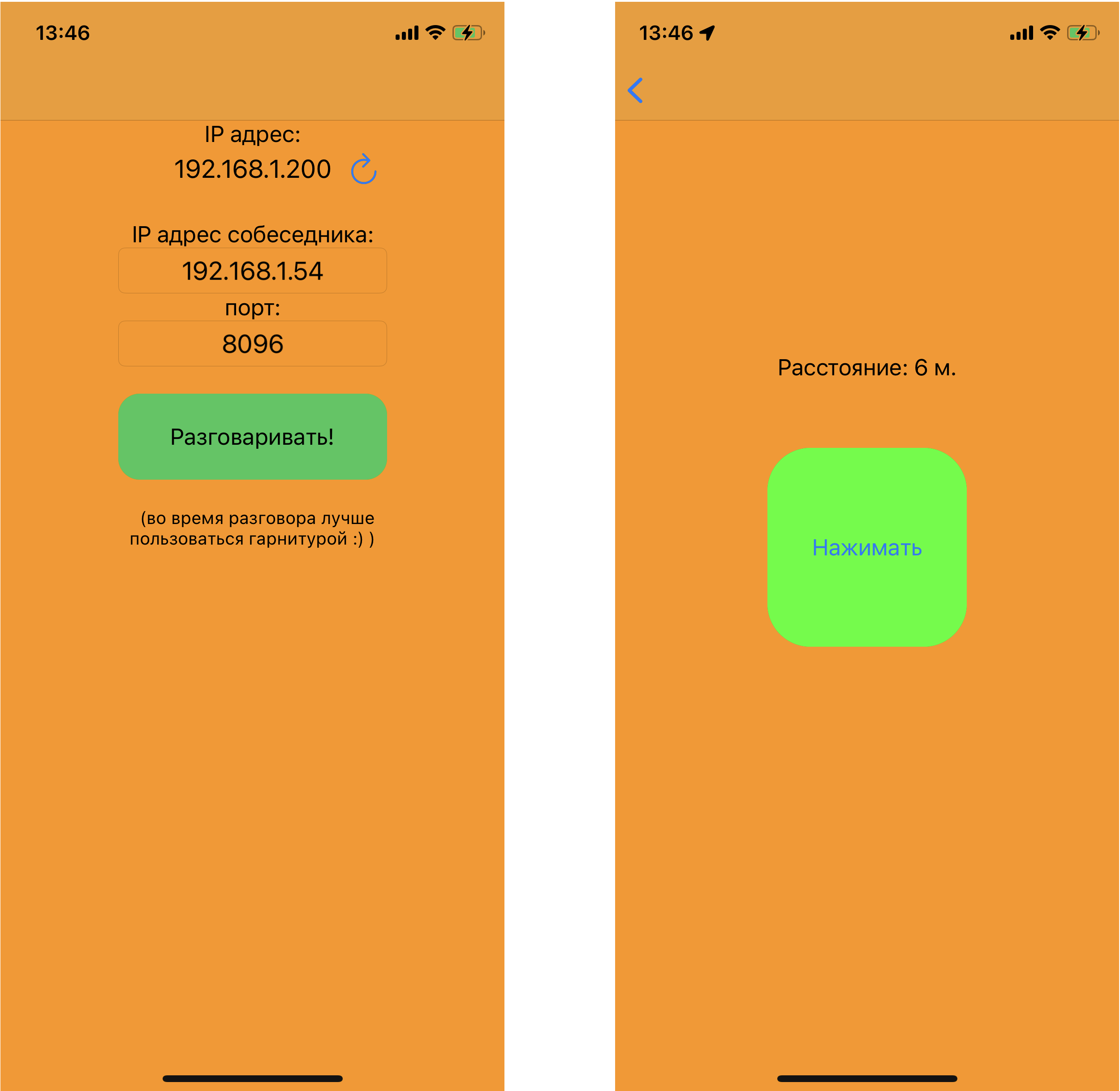 Приложение для общения в режиме рации с помощью двух iPhone.