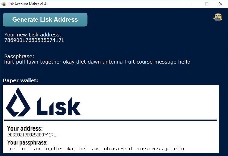 Easy create fresh new Lisk account by one mouse click!