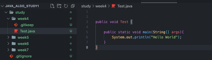- 스터디때 정한 문제를 작업한 후 /study/week[N] 번째 폴더에 들어가 자신이 코딩한 소스를 넣는다.