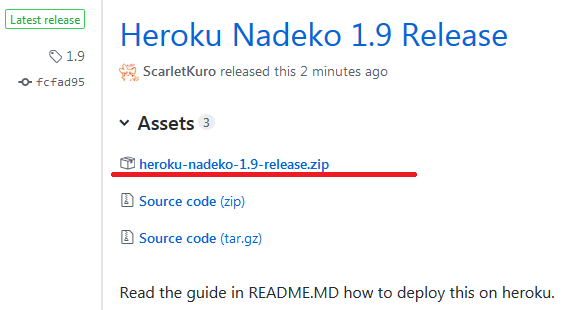 On my github go to to the release and download the heroku-nadeko-1.9-release.zip(not the Source code or anything else)