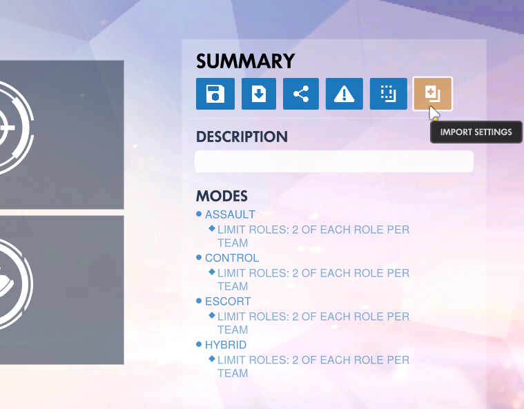 - Click on Import Settings to paste in the copied overwatch custom game settings.