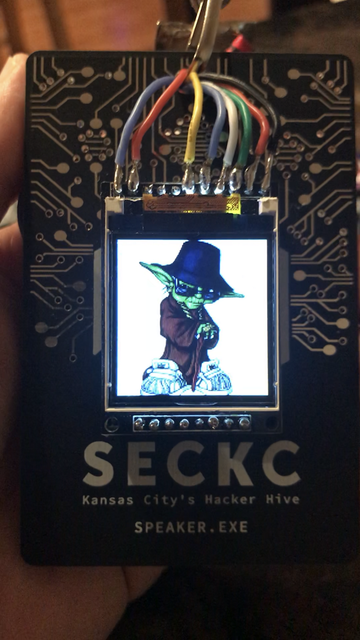 Also, you can check out my blog to see the hardware side of this project: https://blog.geoda-security.com/2019/01/seckc-speaker-badge-name-badge-hack.html