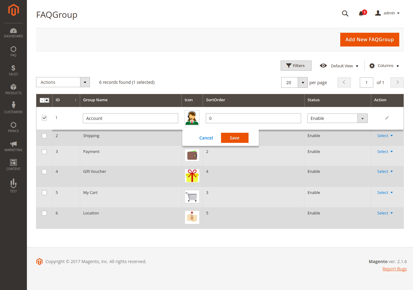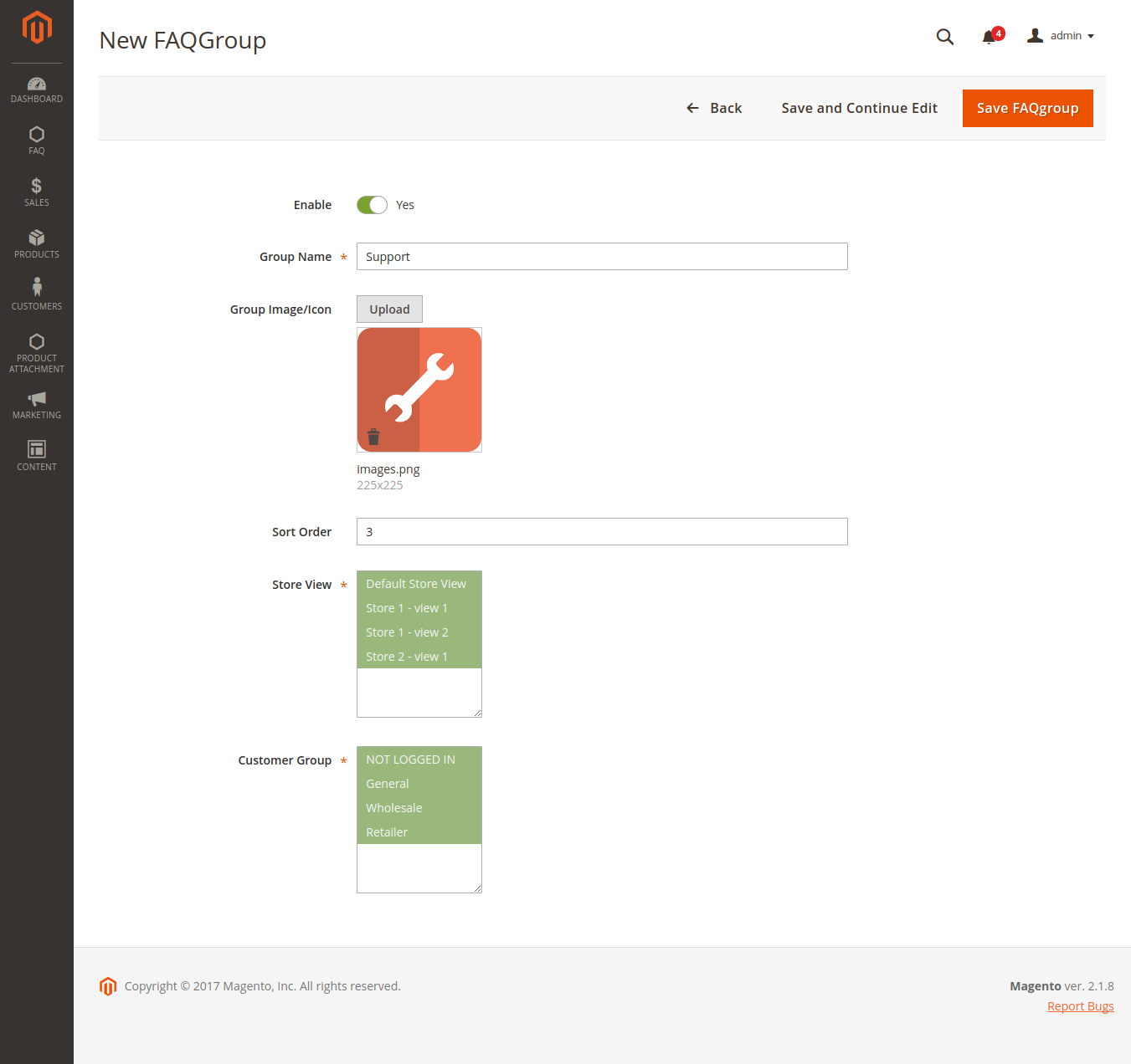 This module adds an easy way to use FAQ section to your Magento store with jQuery Accordion. In this module, admin can add and update FAQ. Admin can also create FAQ group with group icon. Admin can add widgets, blocks, images etc. in FAQ answer with wyswing editor.