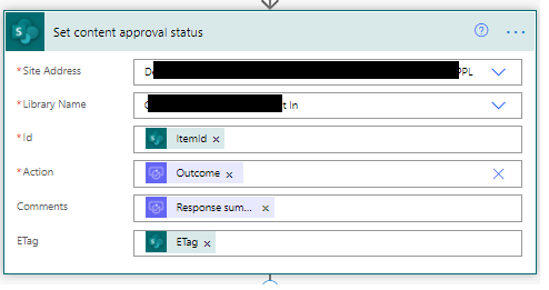 I'm getting a bad gateway message on the Set Content Approval Status action.