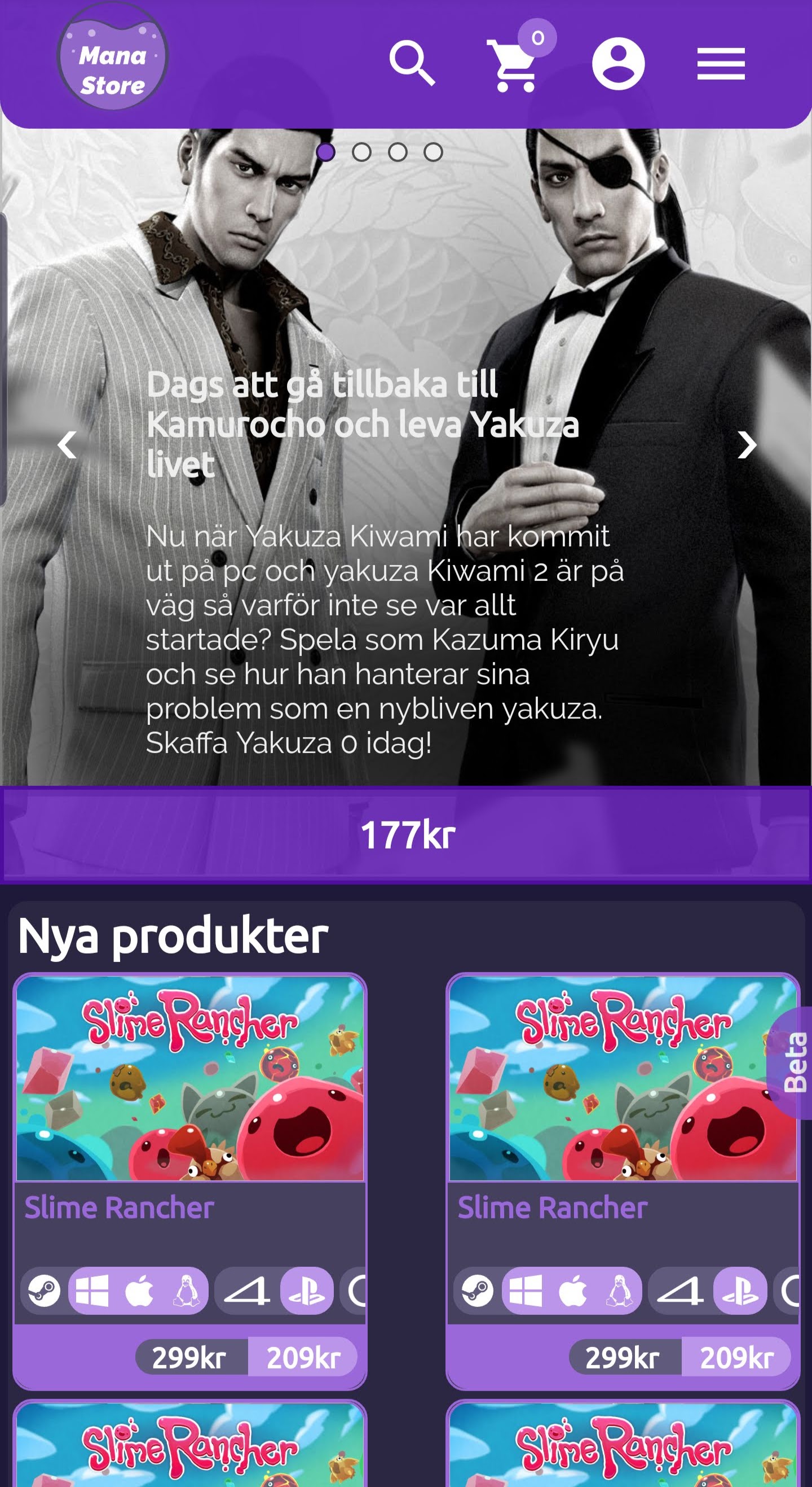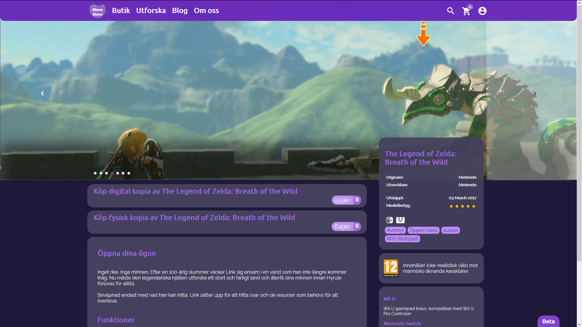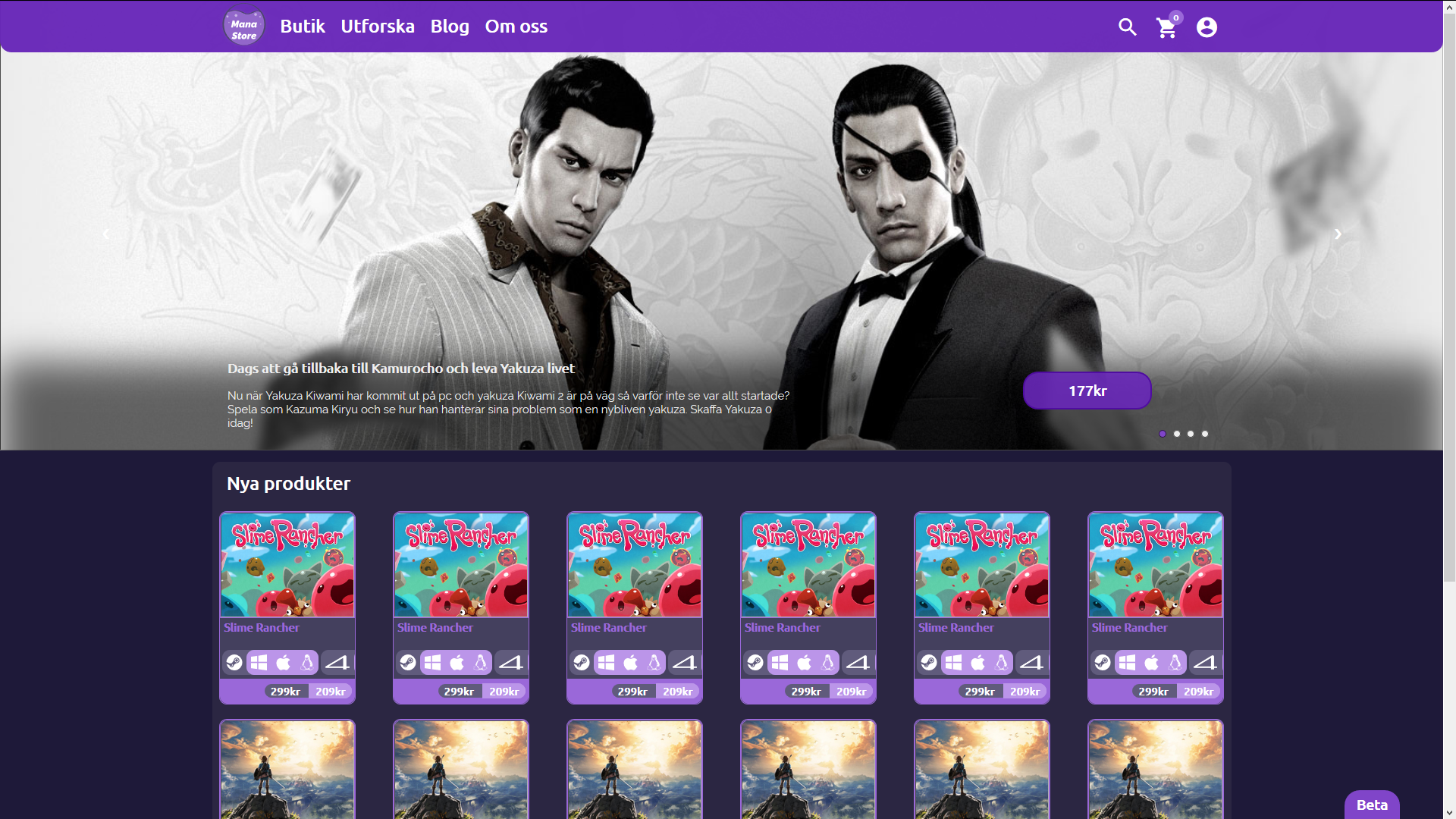 This is my end project for two of my previous courses in high school. This website is pretty much a game store and it is in swedish. One of the sites unique features is that the site's accent color changes hue to match your favorite color that you have selected when creating an account.
