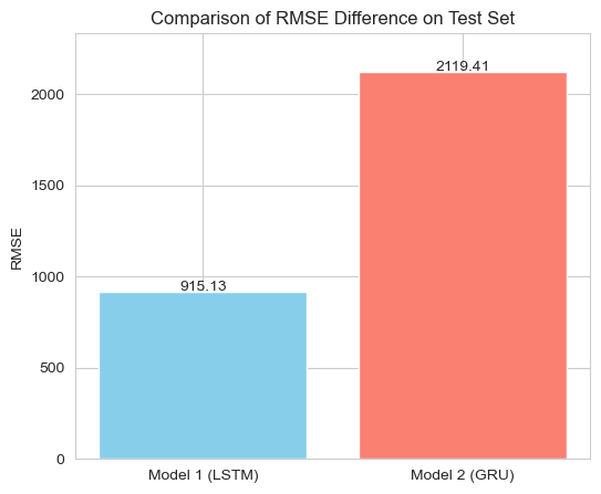 | Model | Train RMSE | Test RMSE | RMSE Difference |
