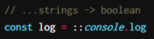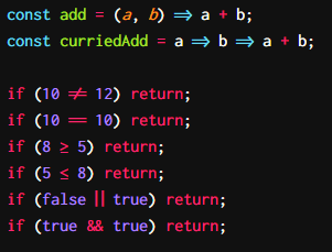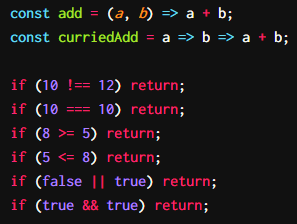 ===Strict equal!==Strict not equal=>Arrow Functions<=Less than or equal to>=Greater than or equal to||Or&&And//Comment->Thin Arrow::function bind operator proposal