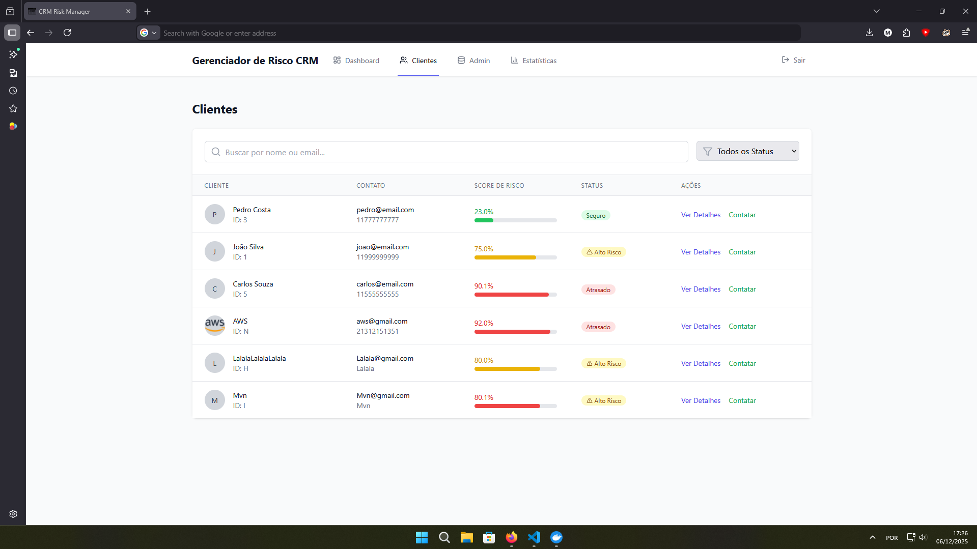 Sistema completo de gestão de clientes com análise de risco e relatórios profissionais.