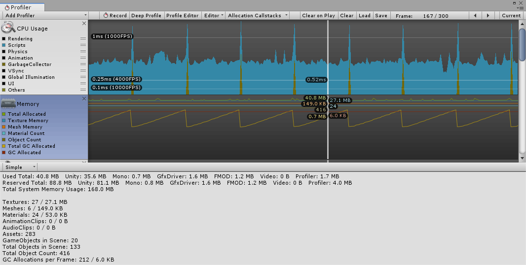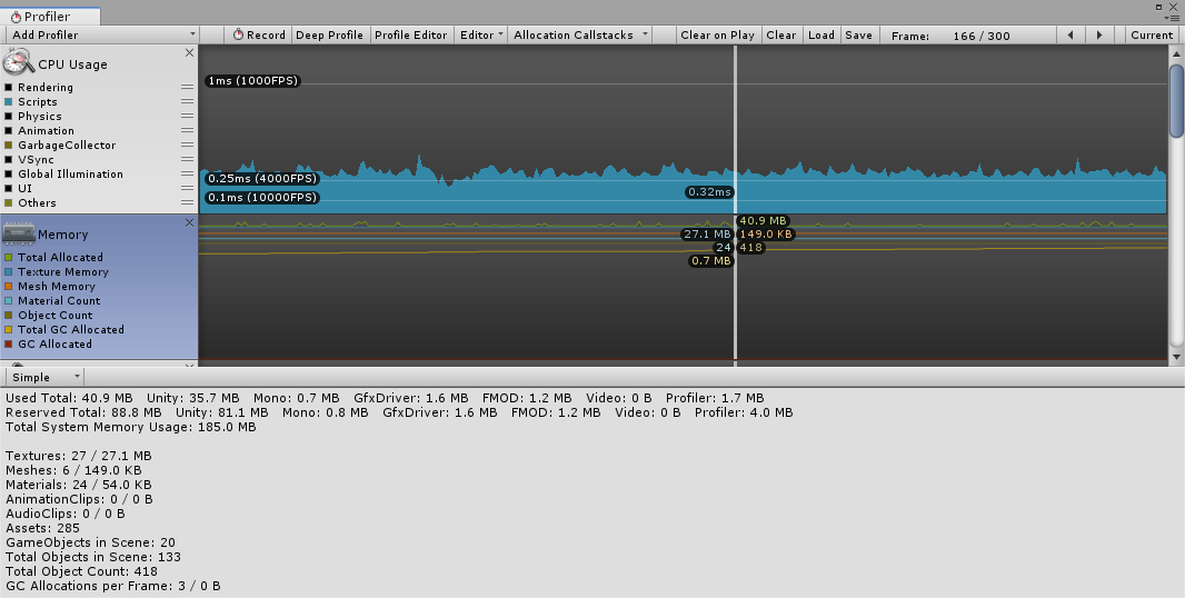 The scene used for this test is Local Multiplayer with 2 characters (one in a gamepad and the other in keyboard+mouse)