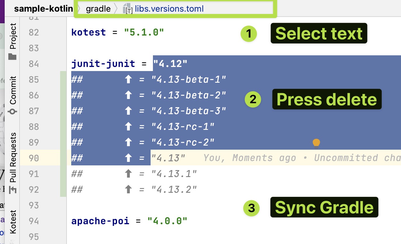 - Setup refreshVersions in your build in its latest release (this is pretty new).