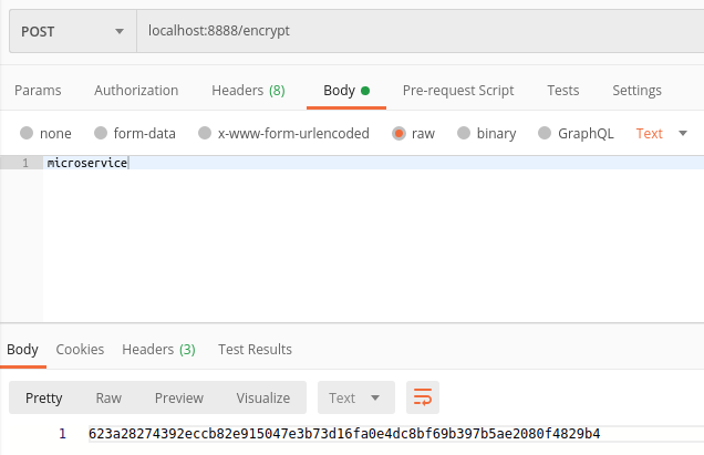 # Getting the value with POST localhost:8888/encrypt and the password in its body