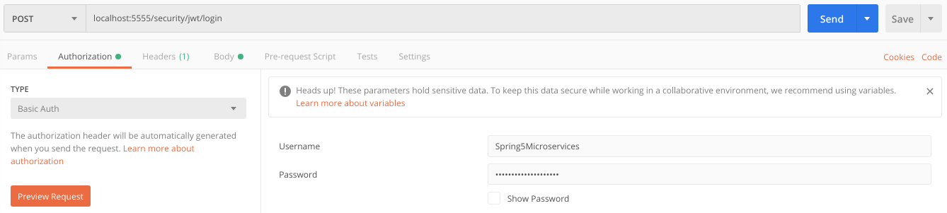 Regarding to every microservice, in this section I will explain the web services provided by every one and how to use them, starting by security-oauth-service. Before enter in details about this security service, it is important to know that, for every request we have to include the Oauth 2.0 credentials: