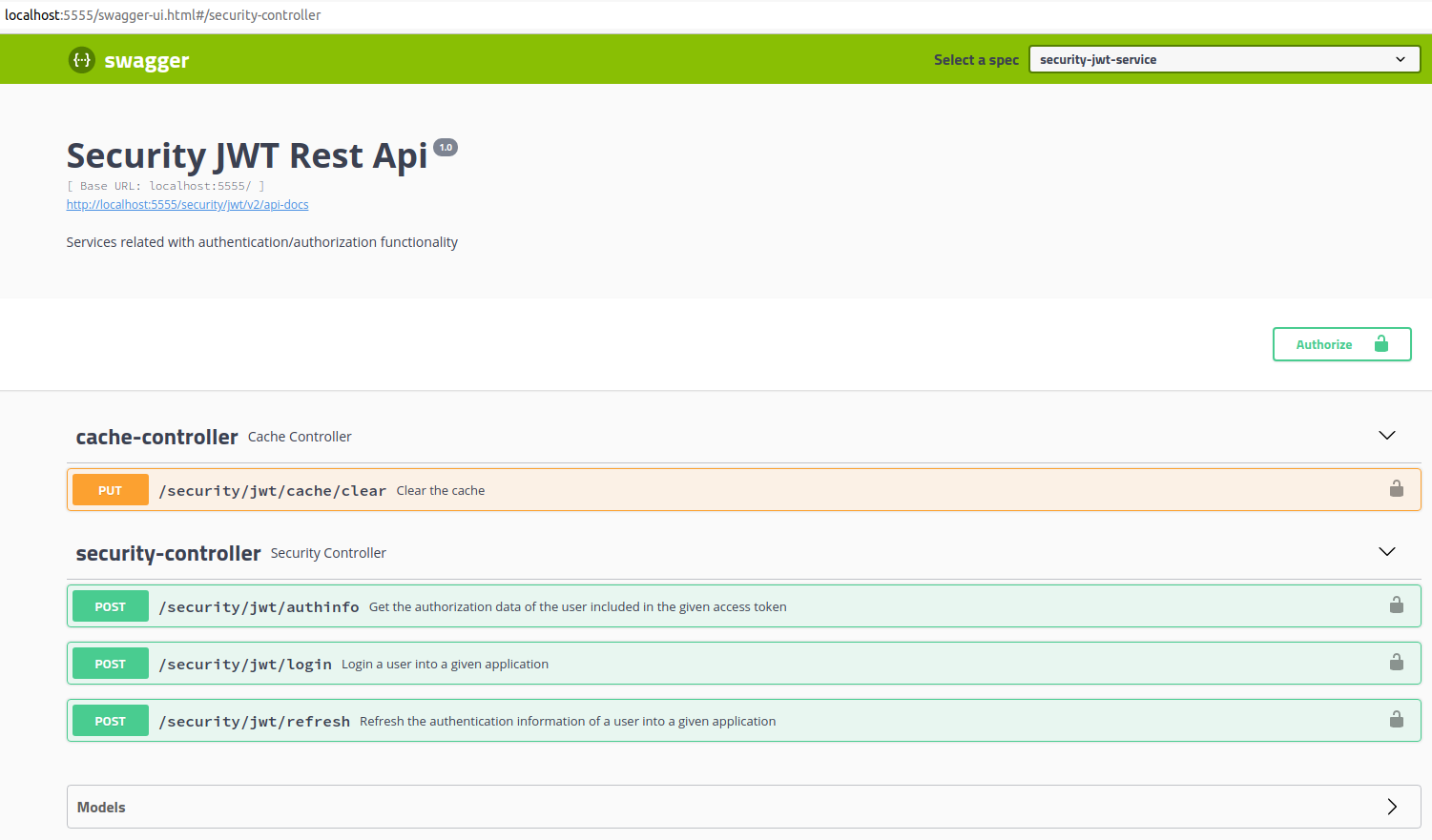 Regarding to security-jwt-service, it has an equivalent list of web services to provide the same funcionality, starting with the required credentials for every request: