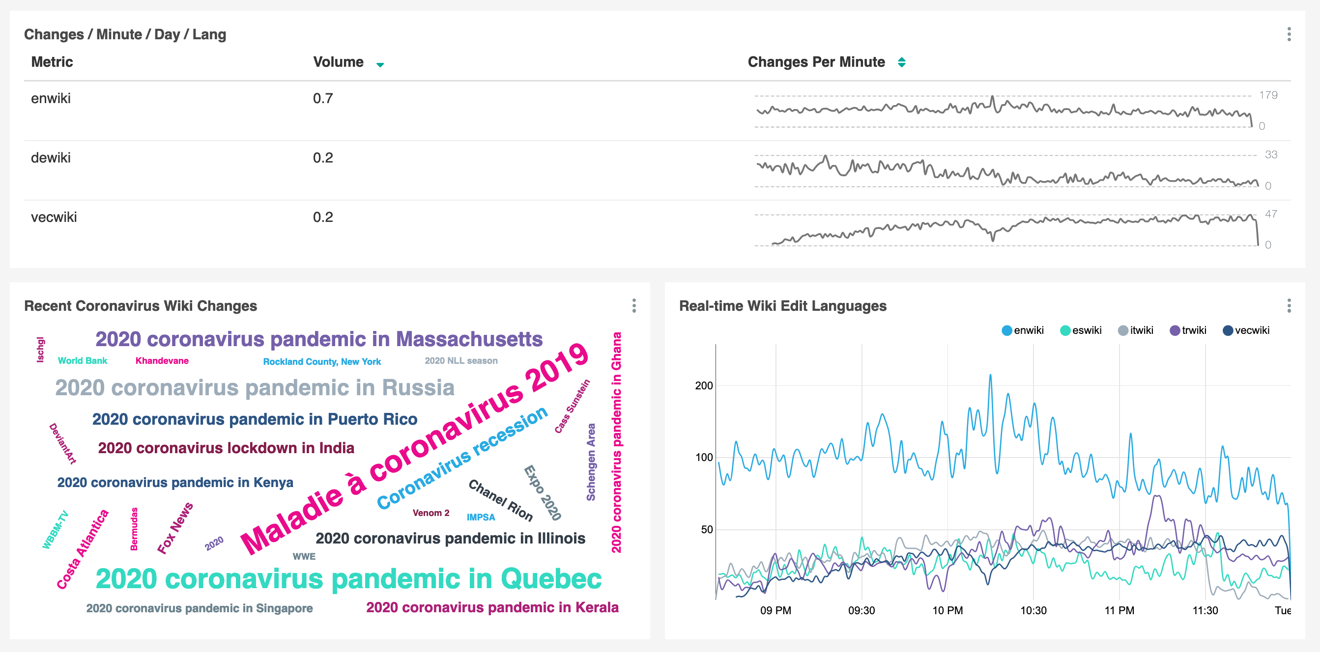 Try this query to get back time series data that shows how articles related to the 2020 coronavirus pandemic are changing minute-by-minute.