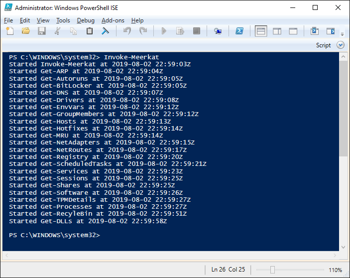 Meerkat is collection of PowerShell modules designed for artifact gathering and reconnaisance of Windows-based endpoints without requiring a pre-deployed agent. Use cases include incident response triage, threat hunting, baseline monitoring, snapshot comparisons, and more.