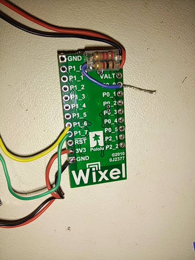 - CAREFULLY bend the resistor leads you inserted so the voltage divider is flat against the Wixel