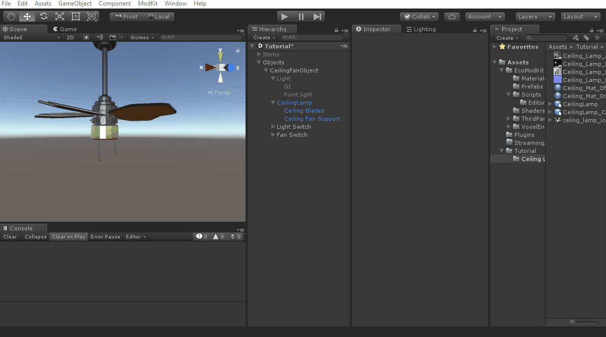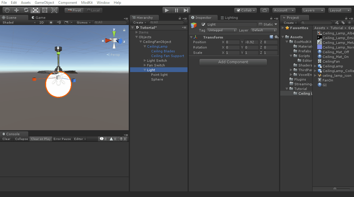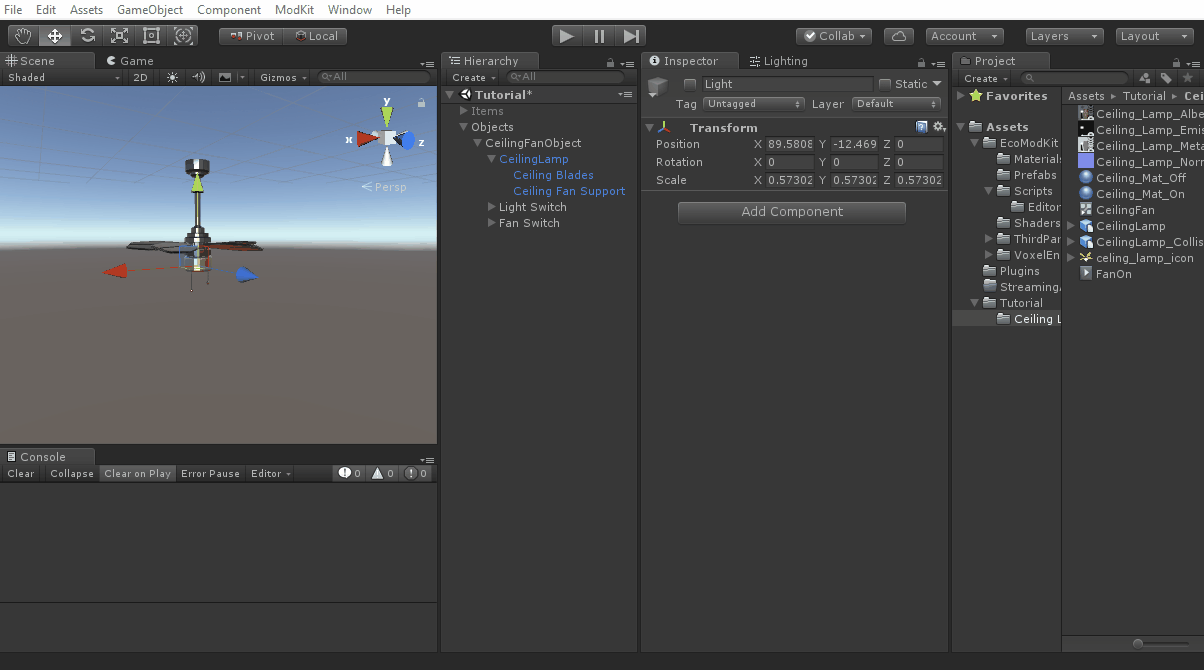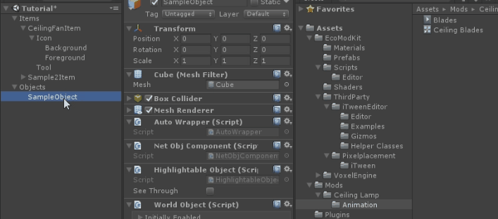 • The CeilingFan seems pretty similar to an ElectricWallLamp so I copied Mods/AutoGen/WorldObject/ElectricWallLamp.cs to Mods/Tutorial/CeilingFan.cs