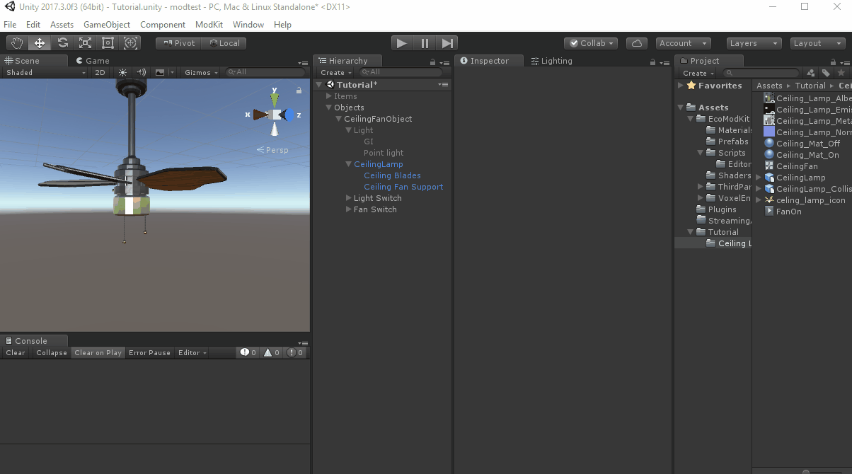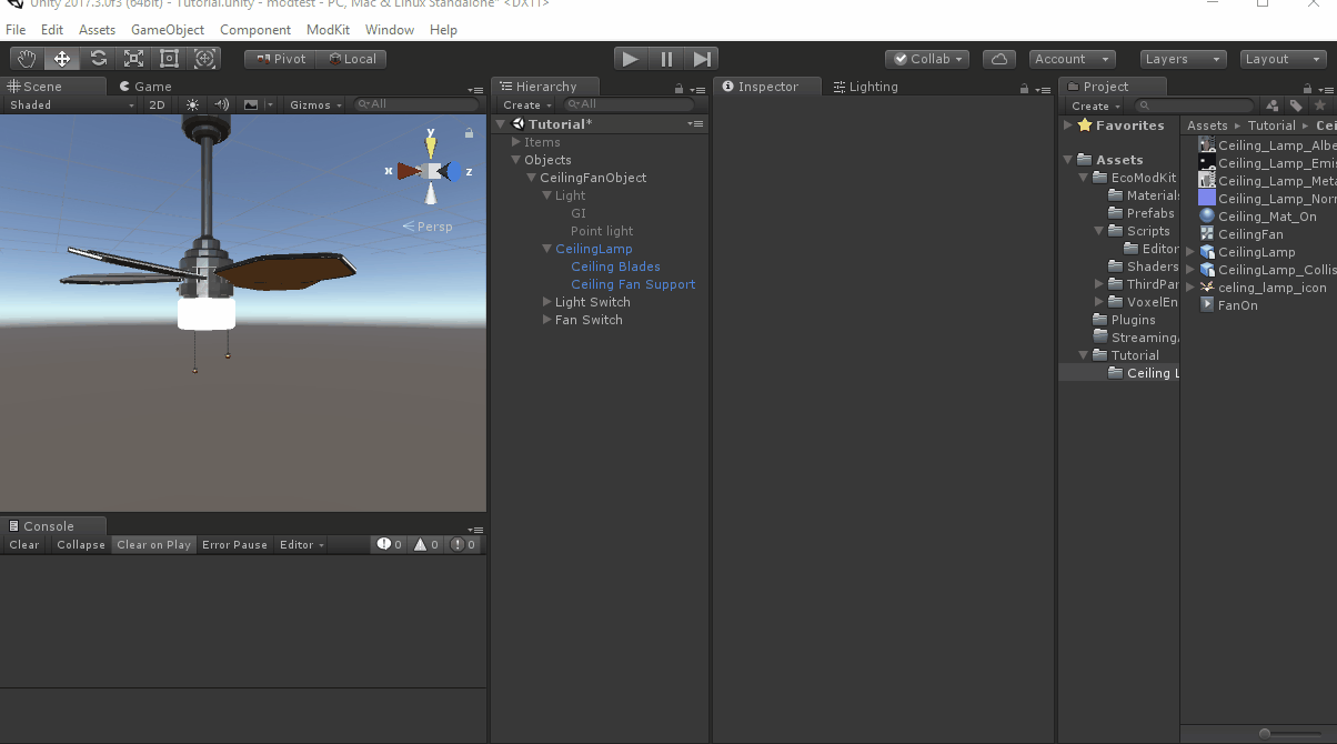 • Place the Ceiling Fan, it should appear but not do anything yet