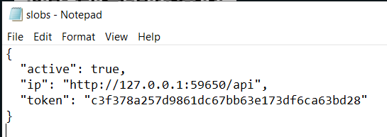 show moreunderneath, copy theAPI Token - Go back to slobs.json & paste the copied token between the