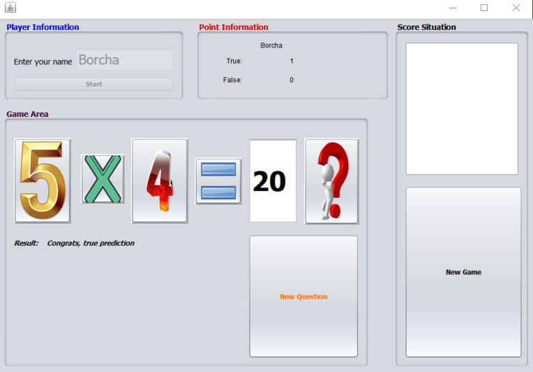 Mathematical Operations Game 🎮➕➖✖️➗ ➡️ It's a 4 operations game ➡️ I writed by using Java and Java Swing ➡️ You can play, just dowload "MathematicGame.jar" file Screen -Video- Screen Screen