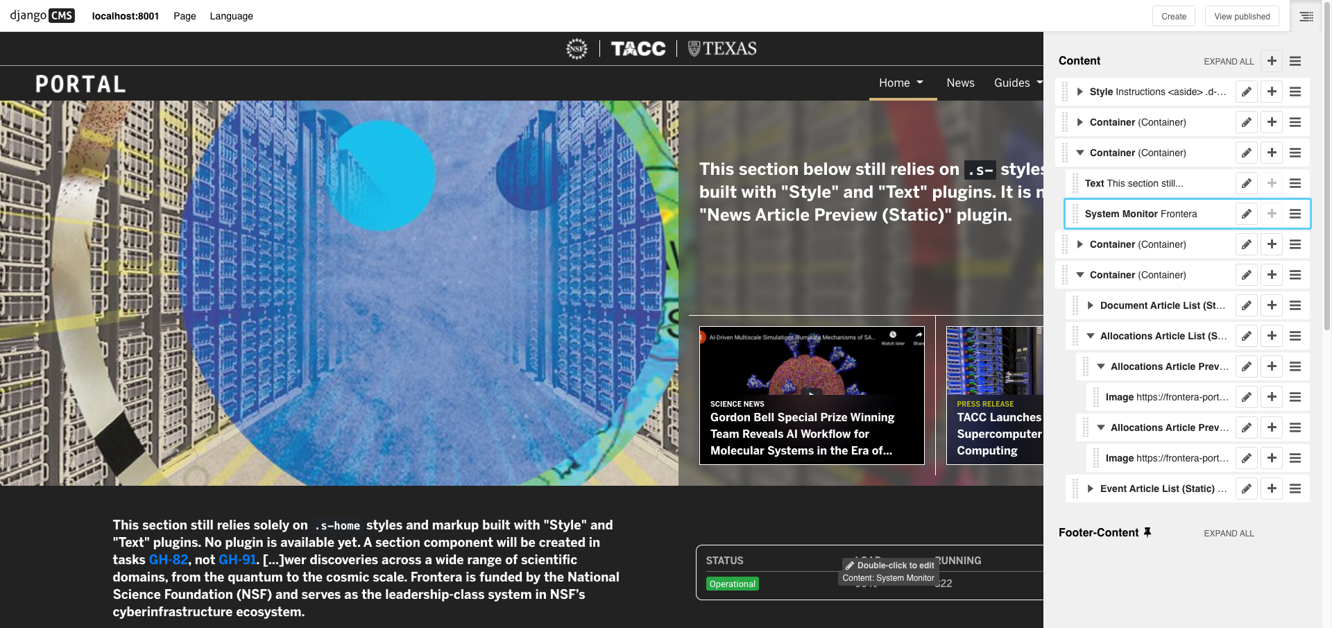 There are so many dependent branches for Frontera System Specs page and Frontera Homepage plugins that I am trying to author independently but test together 🤕 and I crossed the streams.