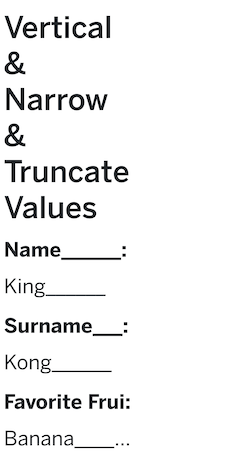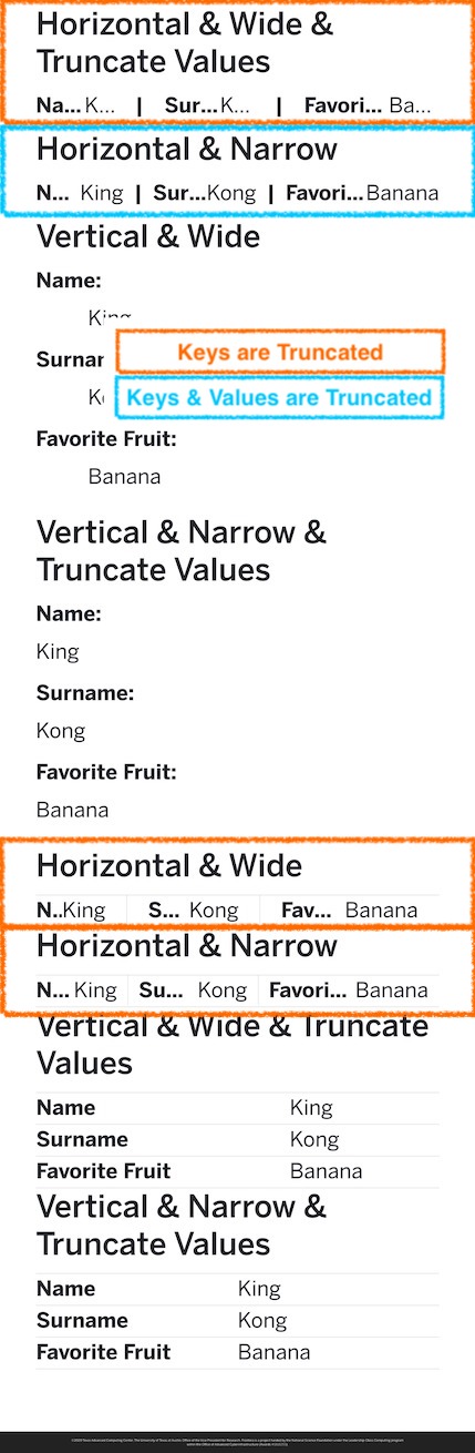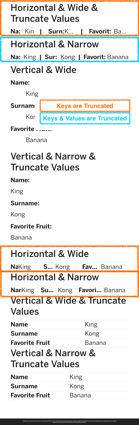 htmlfont-sizeto 500% and 800% to achieve this layout.The vert. layouts don't need truncation at this screen width and font size.