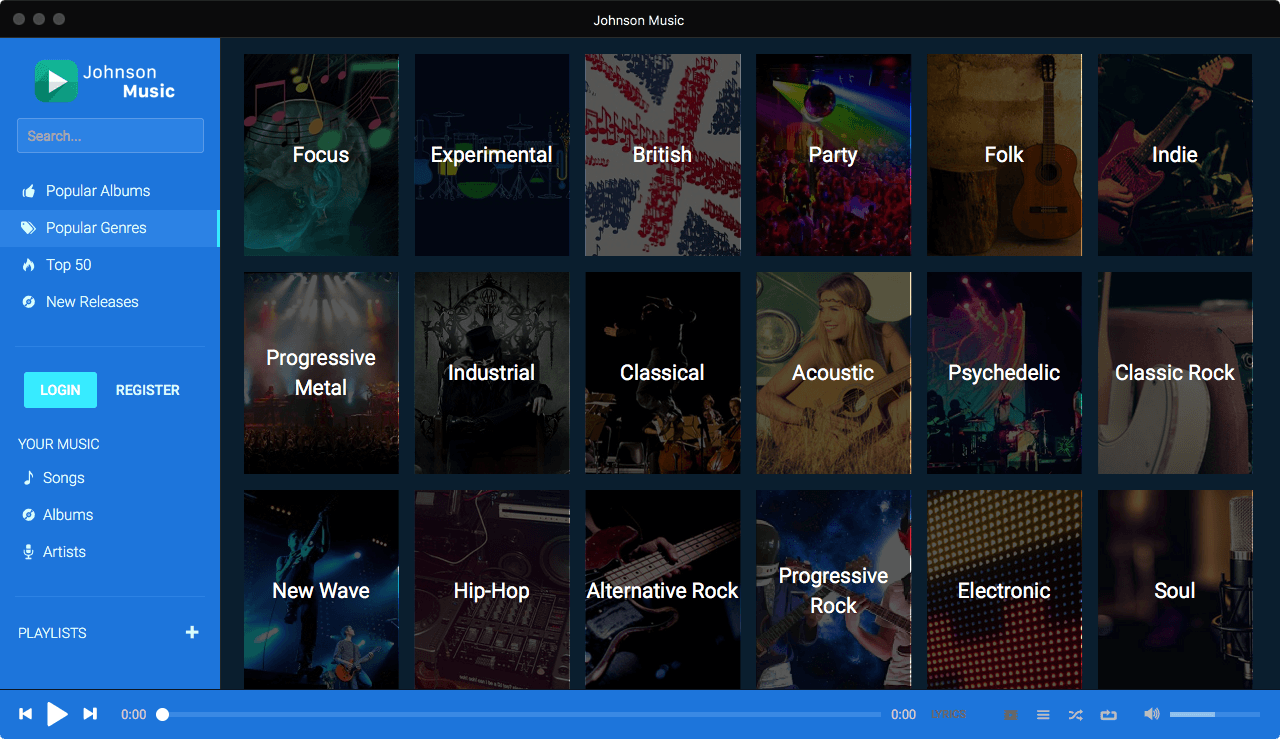 Johnson Music lets you play your music on whichever device you’re using – your iOS device, Mac, PC, or Android. Rock out on your way to work. Kick back and relax at home. Create playlists for your next party. Or let someone else be the DJ and listen to awesome tracks that are from different Countries. More Web Apps for other OSs coming soon.