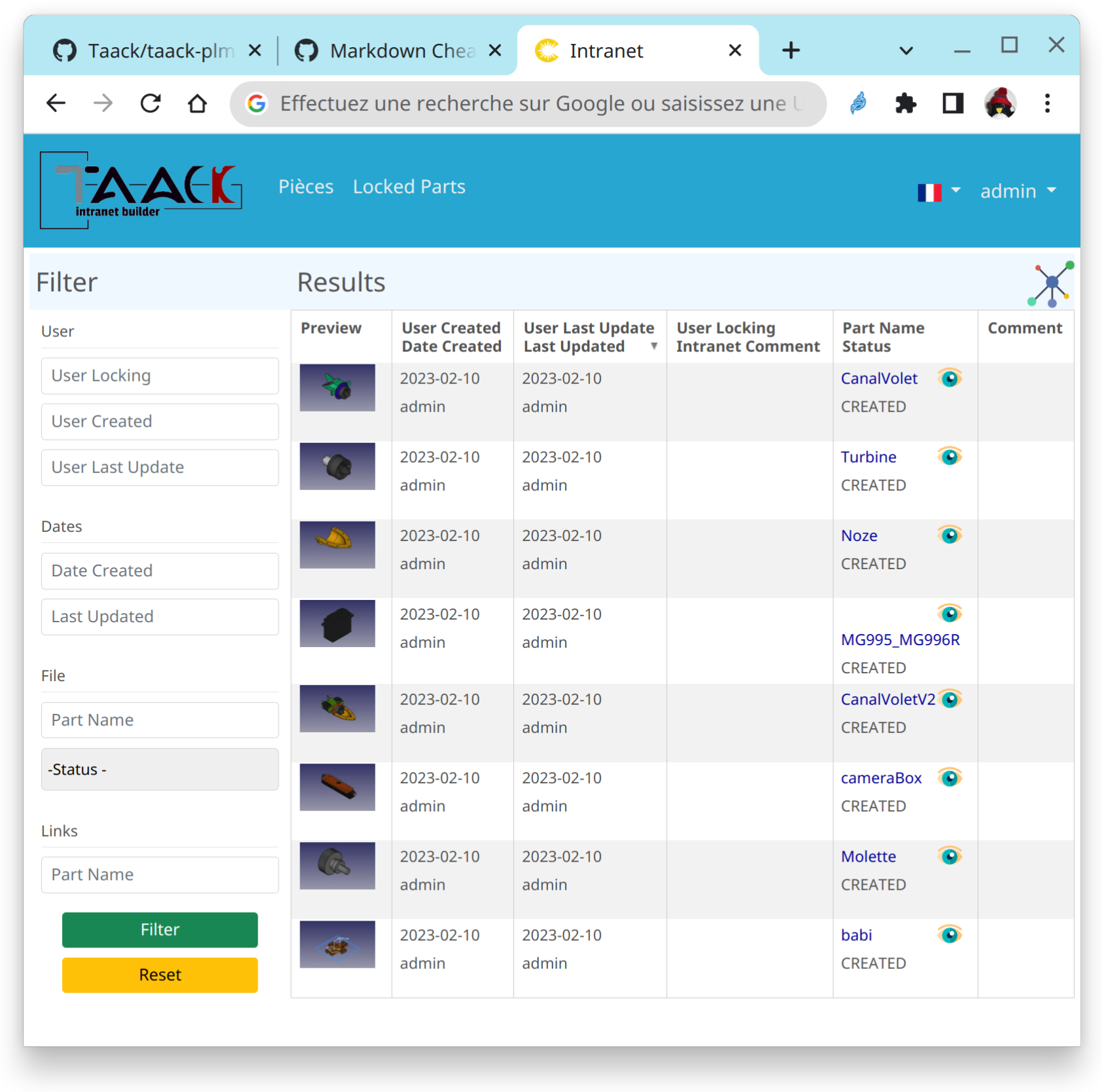 This workbench contains tools to interact with Taack Plm Intranet server app you can find under the https://github.com/Taack/plm