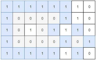 Input: grid = [[1,1,1,1,1,1,1,0],[1,0,0,0,0,1,1,0],[1,0,1,0,1,1,1,0],[1,0,0,0,0,1,0,1],[1,1,1,1,1,1,1,0]] Output: 2 Explanation: Islands in gray are closed because they are completely surrounded by water (group of 1s).