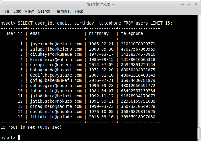 $ mysqldump -h localhost -u root -p --single-transaction anon_test | gzip -9 > anon_test_reduced.sql.gzAlthough probably obvious, only run this script on a database copy, not the master.