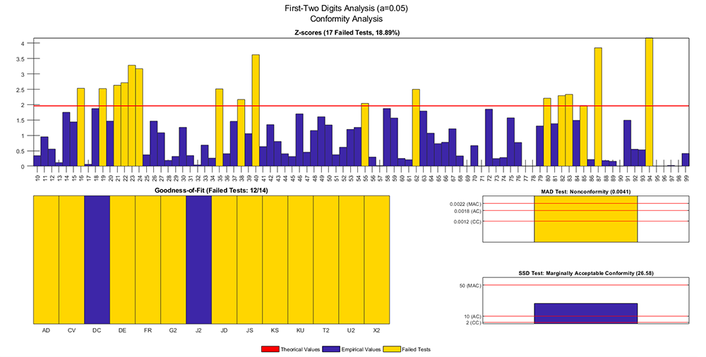 Associated Tests: Last-Two Digits Analysis, Number Duplication Analysis, Distortion Factor Model - the