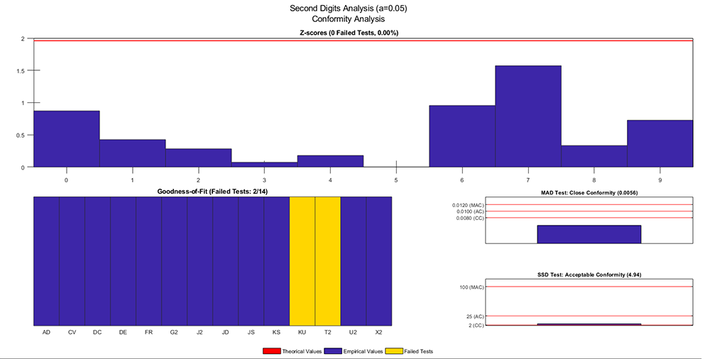 For each significant digit analysis, the following conformity indicators are provided: