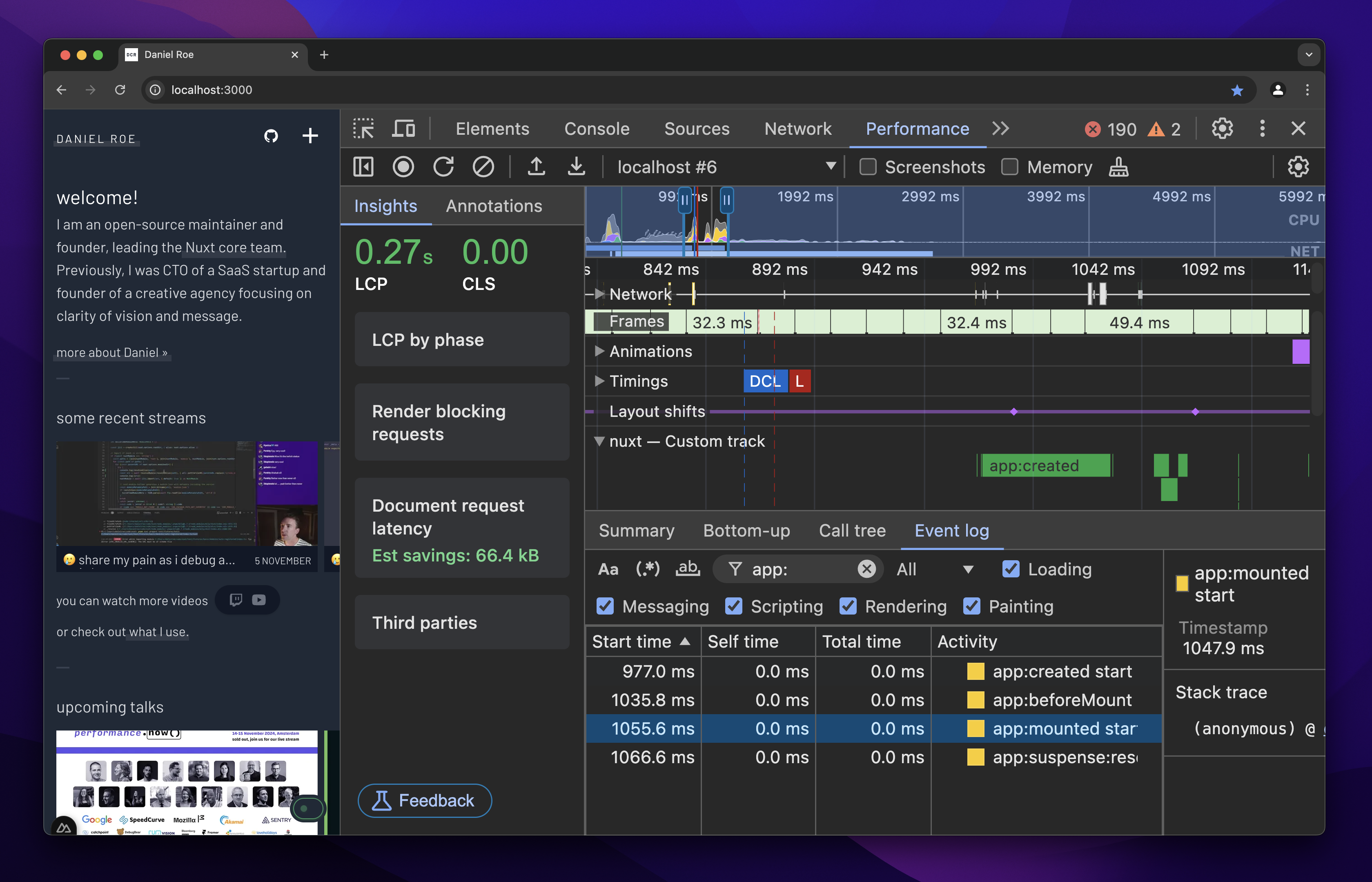 We now use the Chrome DevTools extensibility API to add support for printing nuxt hook timings in the browser devtools performance panel.