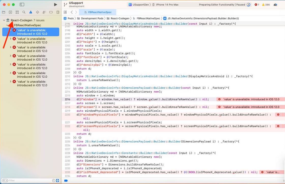 If you encounter the following error when running the app on iOS React-Codegen FBReactNativeSpec 'value' is unavailable: introduced in iOS 12.0 Follow those steps to fix it: