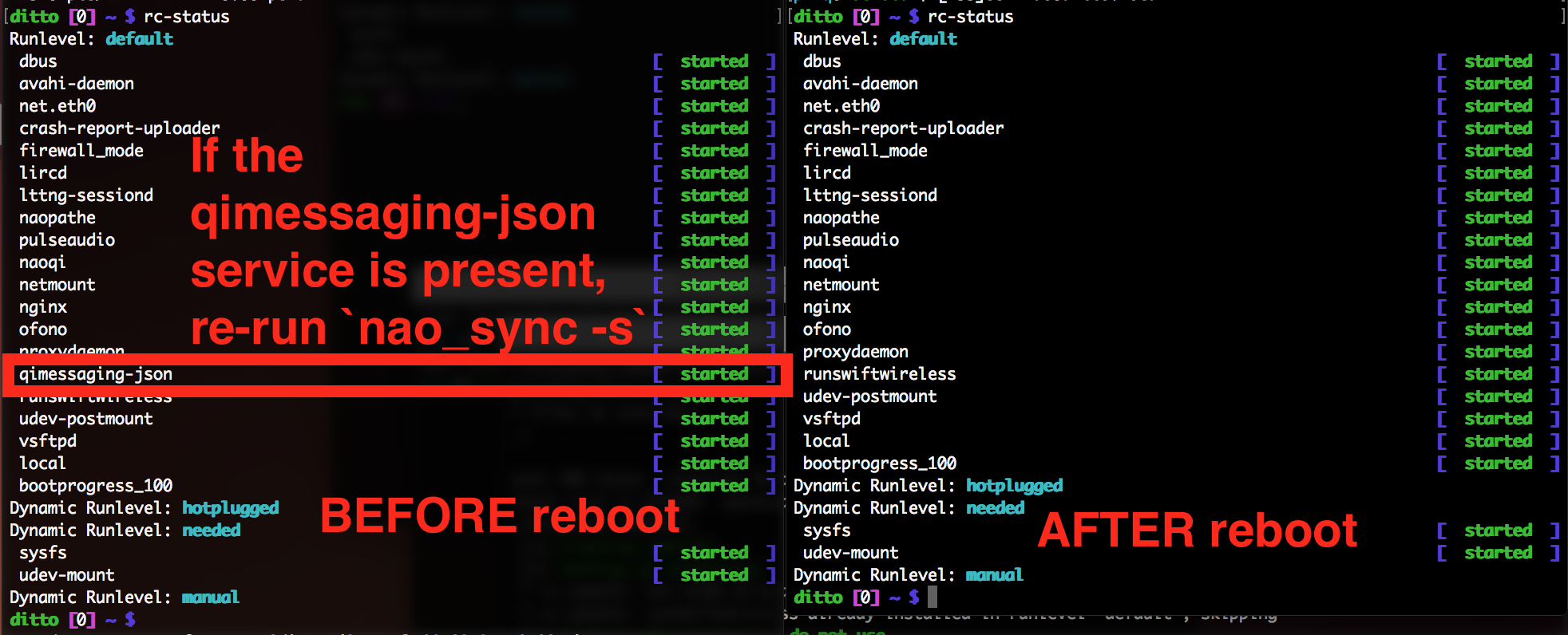 nao_sync -s <robot>. Enter the password for the robot when asked to, and enter the root password (root) when asked to. nao_sync -ar <robot>
