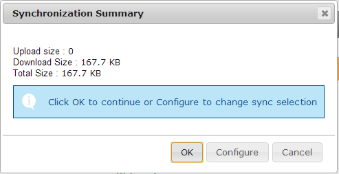 On this dialog you have the option to just synchronize everything by selecting 'OK' or to select the tools to synchronize by selecting 'configure'