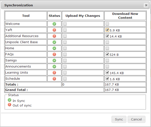 When selecting sync now you will see the following dialog if you are not in sync with myUnisa