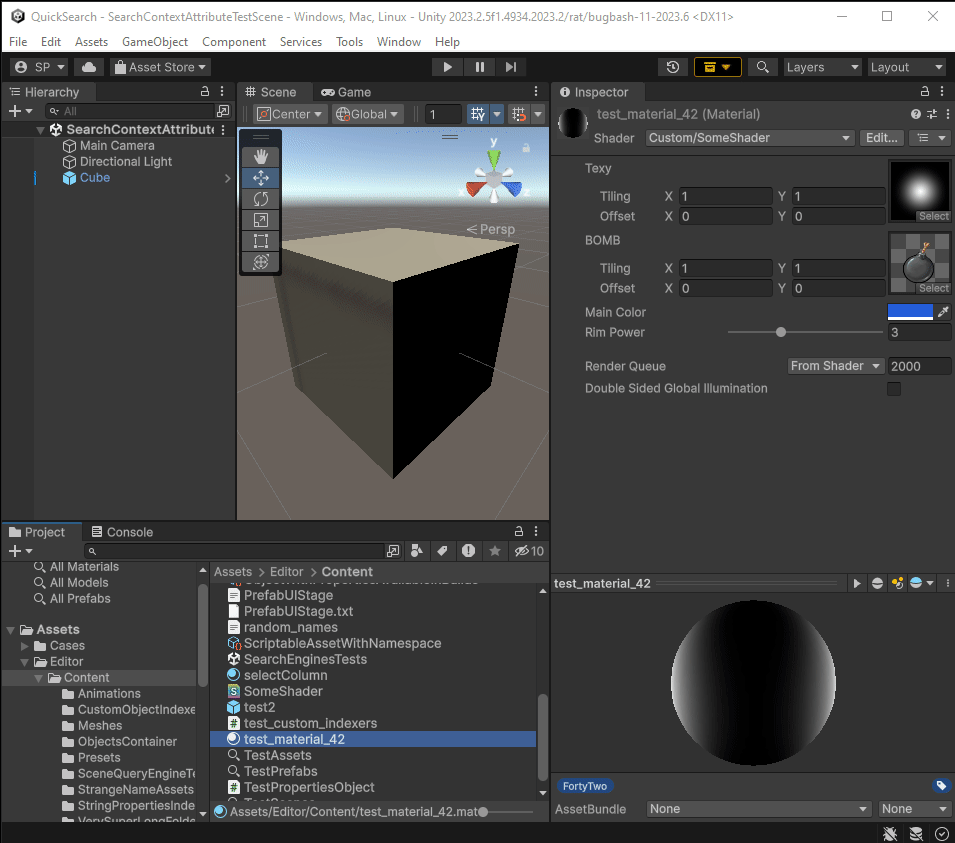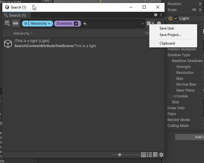 Similarly, if properties are indexed in your project you can open the Search Window to search for object with a specific property value. Right click on any properties of an asset and select Search for same property:
