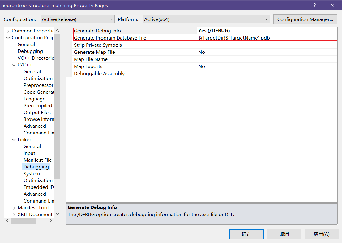 In Configuration properties -> Linker -> Debugging: