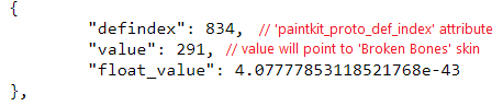 Updating the UI to search for a paintkit index # from the actual weapon on the floor (hidden item attribute) would fix the name not showing. The game would need another way to search item rarities to fix the color not being applied to on War Paint weapons.