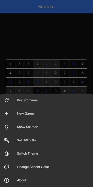 This is a fully fledged Sudoku game written in Dart using Flutter.