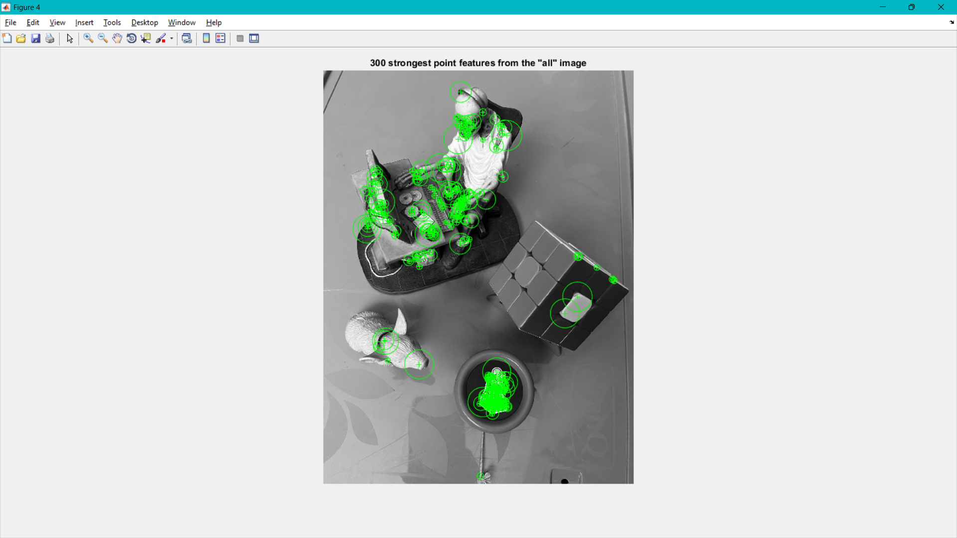 Once the points of interest are detected, the extractFeatures() function is used to extract the features of those points.