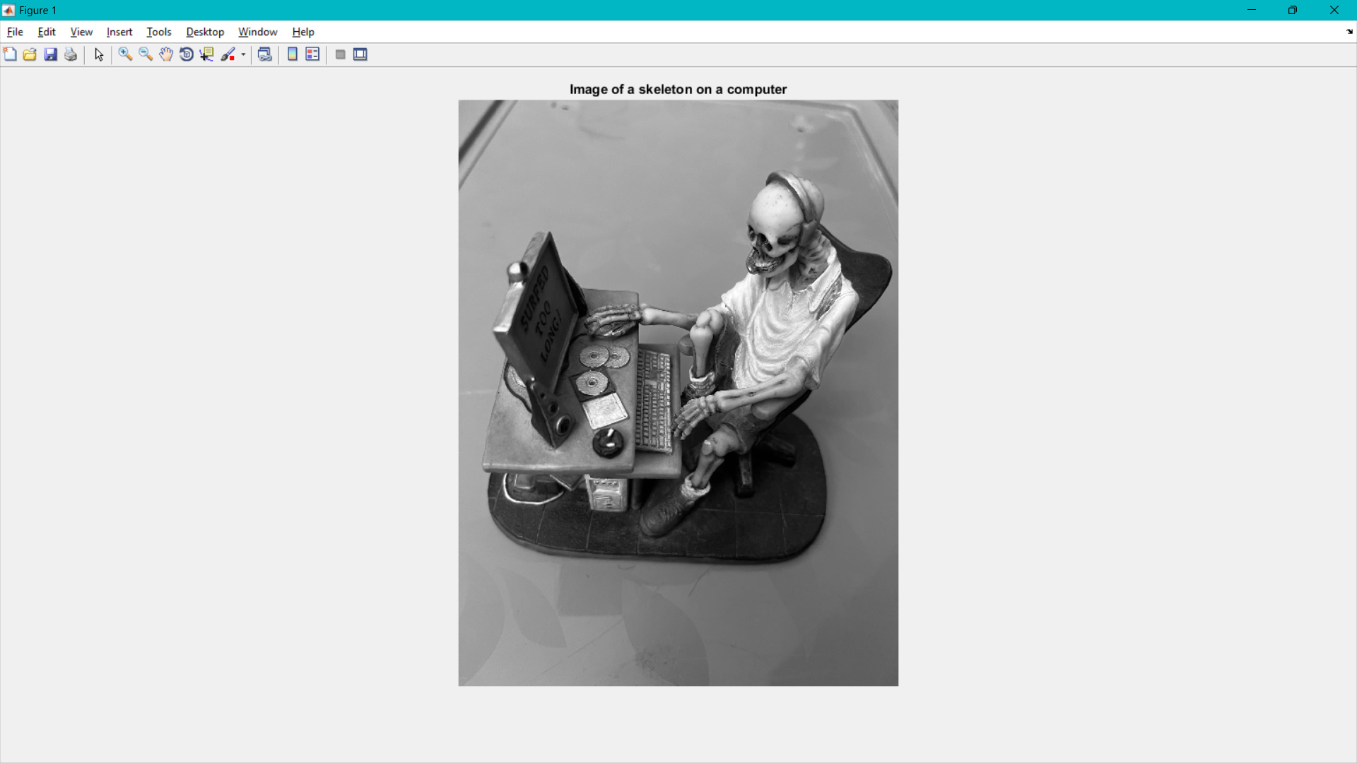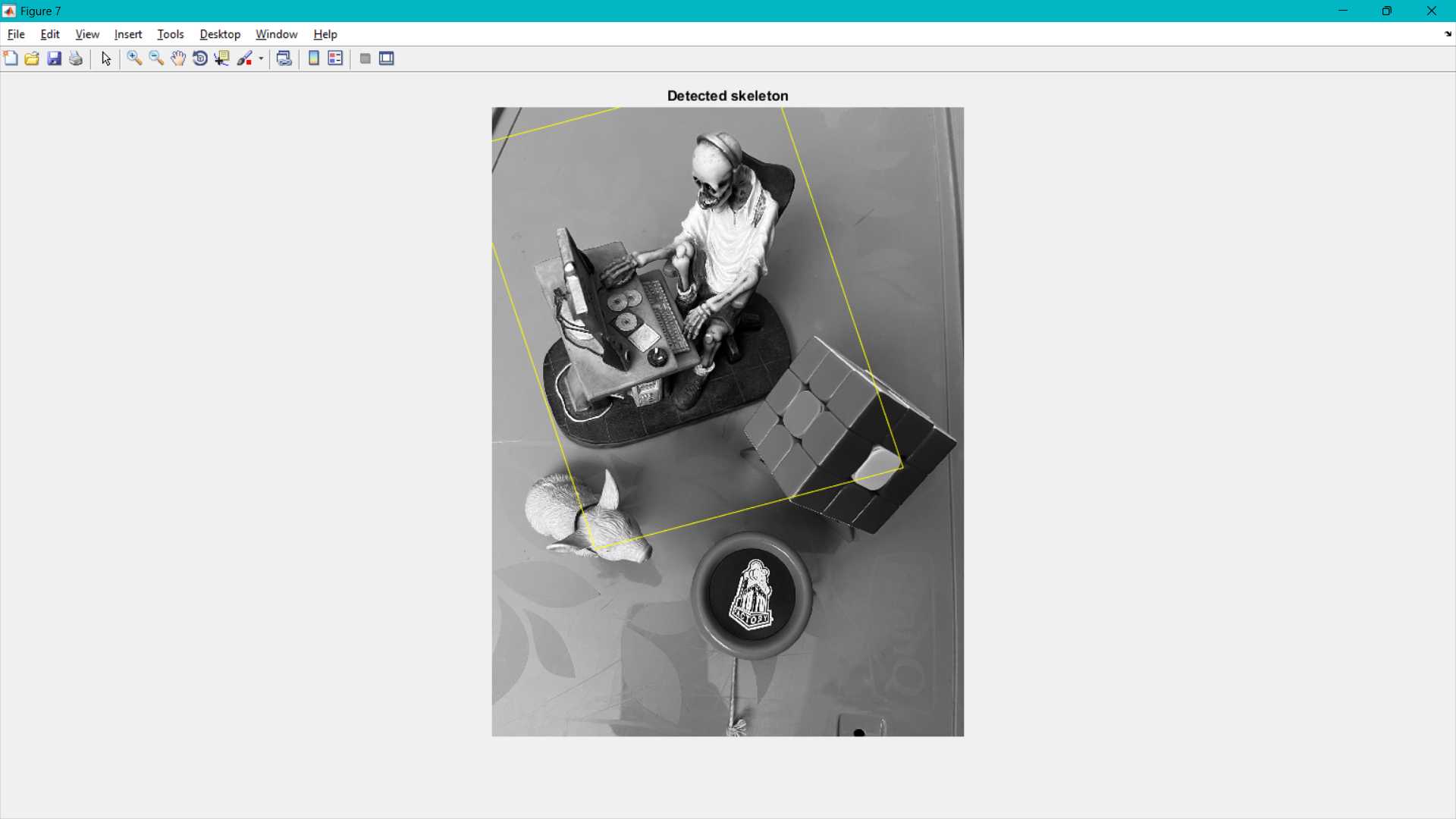 skeletonImage is loaded as an image from a file named "skeleton.jpg" and converted to a black and white image with the rgb2gray() function.