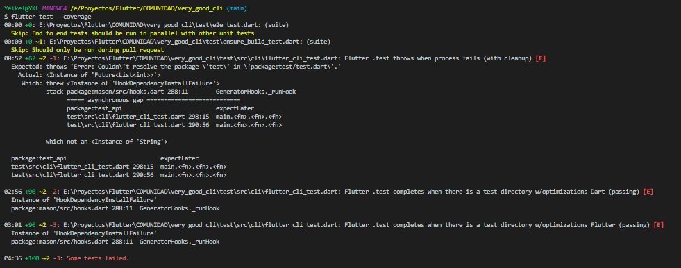 Some tests fail when running the flutter test --coverage command in the Windows PowerShell console without making changes to the project code.