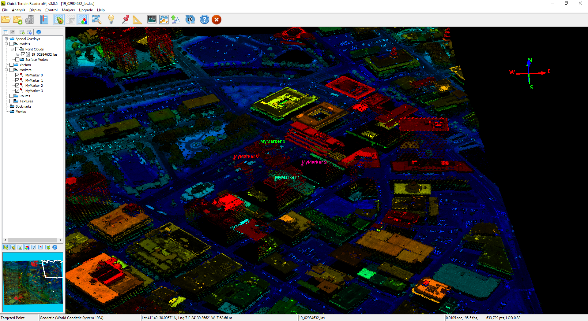 To create control points, a csv file must be generated in this format. The source can come from surveyors, common GPS, advanced DGPS, or LiDAR. This tutorial will cover an example using a Rhode Island LiDAR and the Windows Application QTReader to create a control point file.